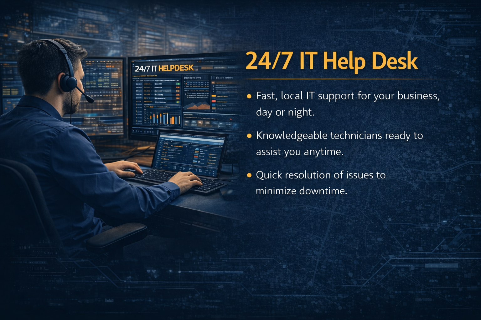 Our fully staffed IT help desk in Austin provides 24/7 monitoring and user support to resolve issues quickly before they escalate. From password resets and software issues to network interruptions, your team gets fast help without disruption.