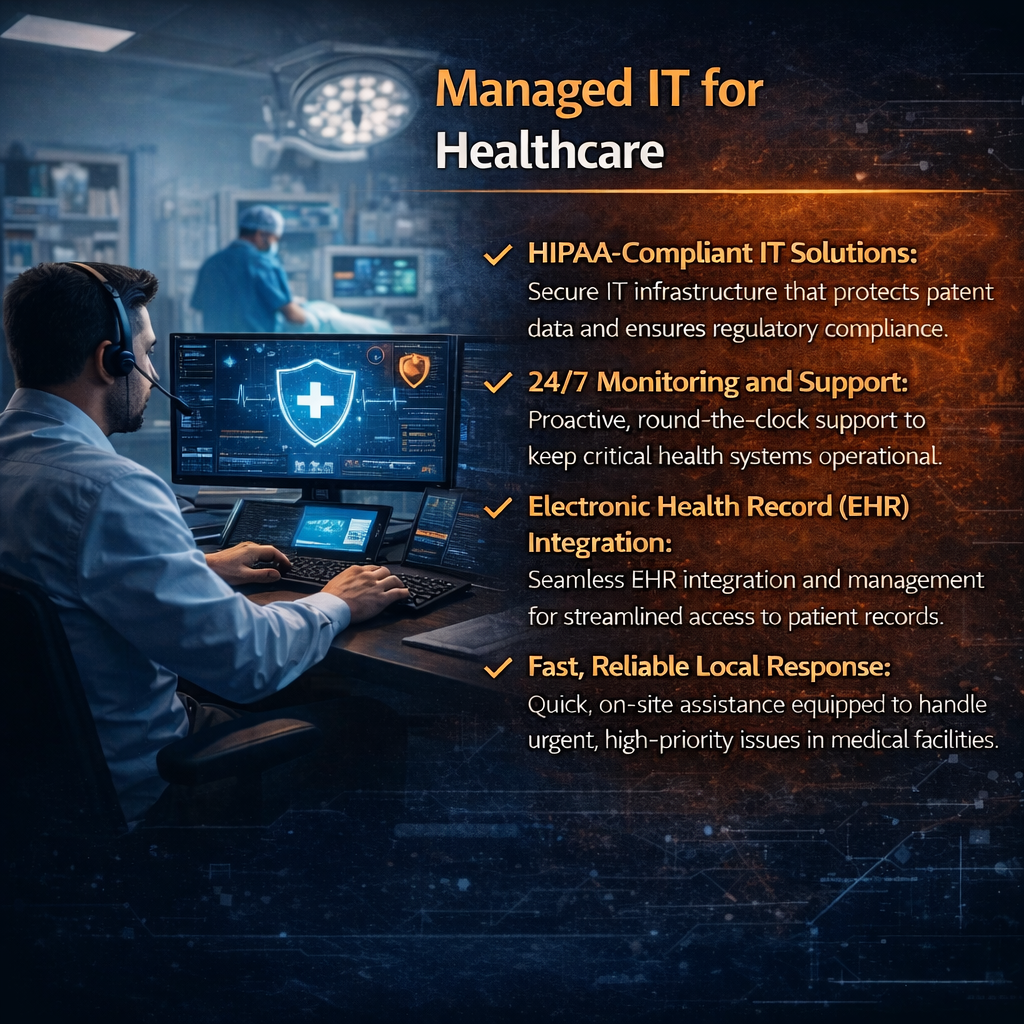 HIPAA-compliant systems, electronic health records support, and secure patient data management for medical practices and clinics.